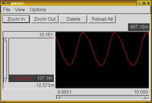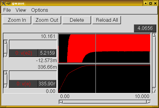 gnucap> tran 10.01 .001 trace all >z gnucap> !gwave z &
