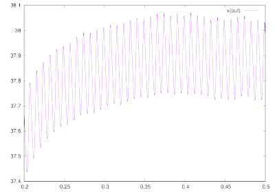 Now, there is a file tr.out with voltages over time. Plot some of it, and it may look like